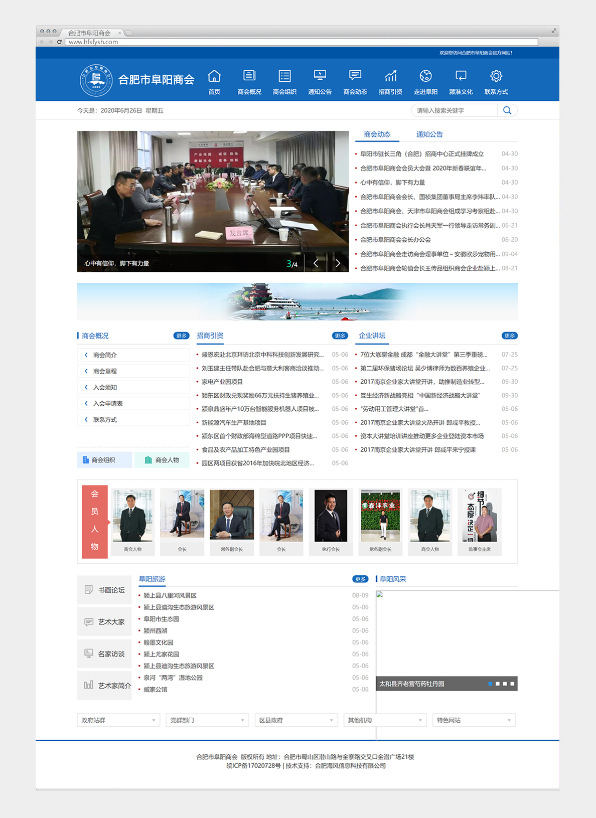 合肥市阜阳商会成立于2008年11月8日,目前拥有会员企业206家。产业涉及到环境工程、环保节能、生物科技、人工智能、新兴地产、新能源、资本运营、农产品生产加工、商贸流通等16大类、36个分支。年产值(营业收入)过亿的企业42家,最高的达到200多亿元,利税达25亿元以上。自2018年1月28日换届后,进一步理清了发展思路,进一步加强了商会自身建设,进一步创新了发展模式,进一步提升了服务会员企业的精准度和时效性,为促进合肥、阜阳两地经济发展和社会进步奠定了良好的思想基础、平台基础、合作基础和服务基础。