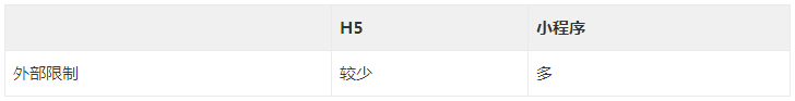由于小程序依赖微信平台,因此微信平台要对内容安全等事项负责,比如你想搞个有 UGC 的产品,用 H5 可能还可以趁着监管宽松无证裸奔一阵,或者说做大了再补证。